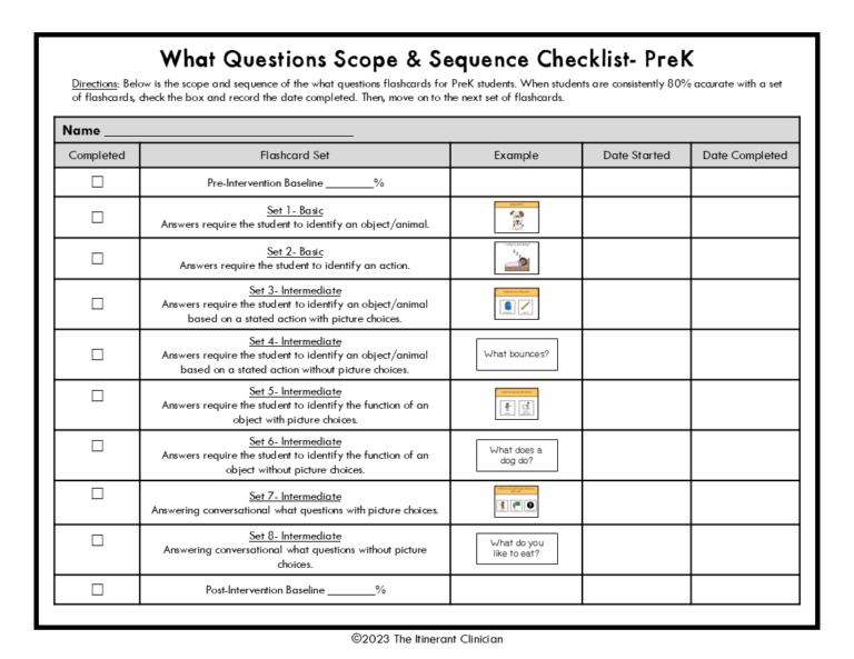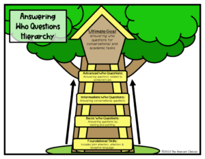 After identifying which WH questions your student needs to work on, follow a scope and sequence to guide instruction. This ensures your WH questions for speech therapy sessions are intentional, organized, and developmentally appropriate.